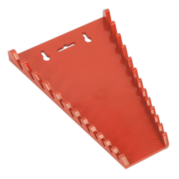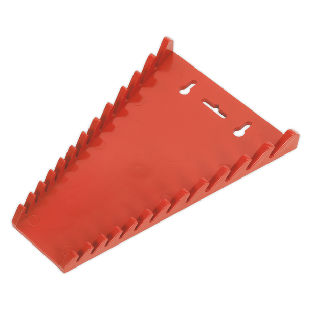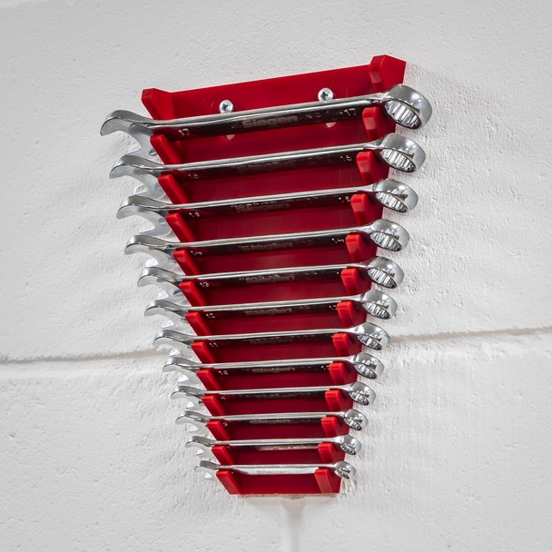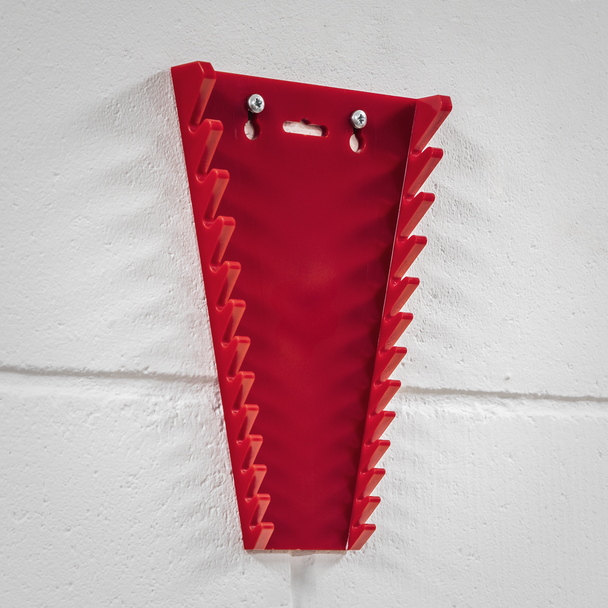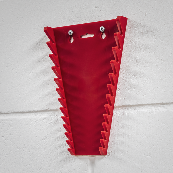 Durable composite spanner rack help maintain an organized toolbox or workstation. Holds up to 12 spanners for easy size identification. Can also be carried or hung on a wall.